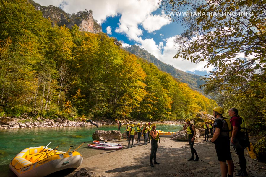 fees for boating, compulsory insurance, Ticket NP Durmitor, Licensed rafting guide, van transportation of personal luggage to the place of stay, transport with van from the target (Šćepan) back to the Great Bridge on Tara, nutrition through 5 meals with one drink with meals and accommodation at the camp Radovan port (30 km) or camp Gentian (60 km). The selection of the camp depends on the wishes of guests, the water level and the start of the commencement of the program.