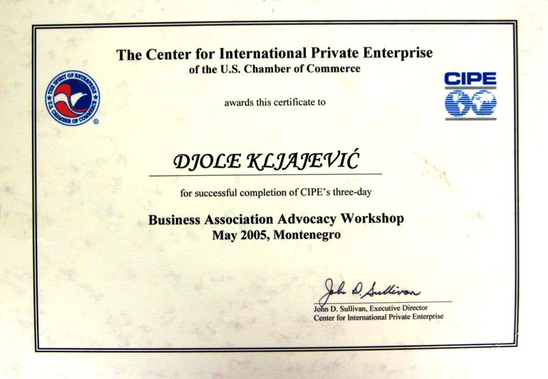 CIPE / U.S. Chamber of Commerce – Business Association Advocacy Workshop (Maj 2005, Crna Gora)