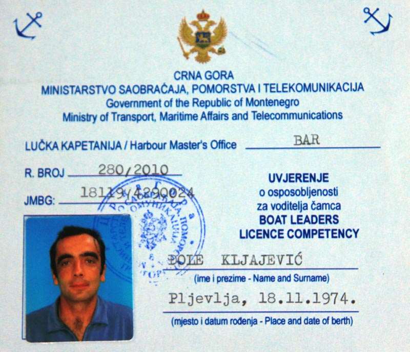 Boat Leader’s Licence Competency – Lučka kapetanija Bar (Ministarstvo saobraćaja, pomorstva i telekomunikacija Crne Gore)