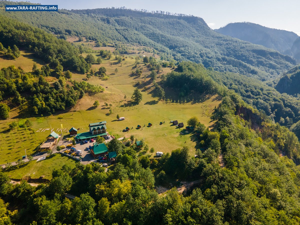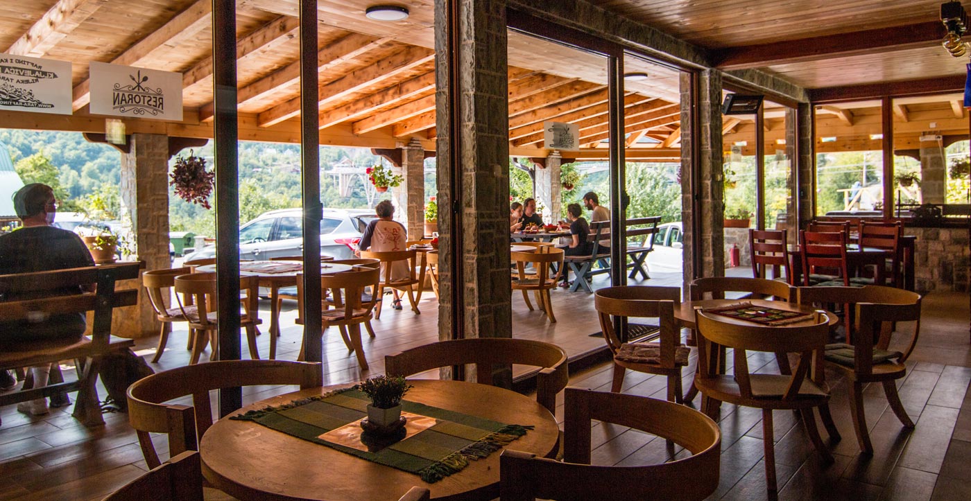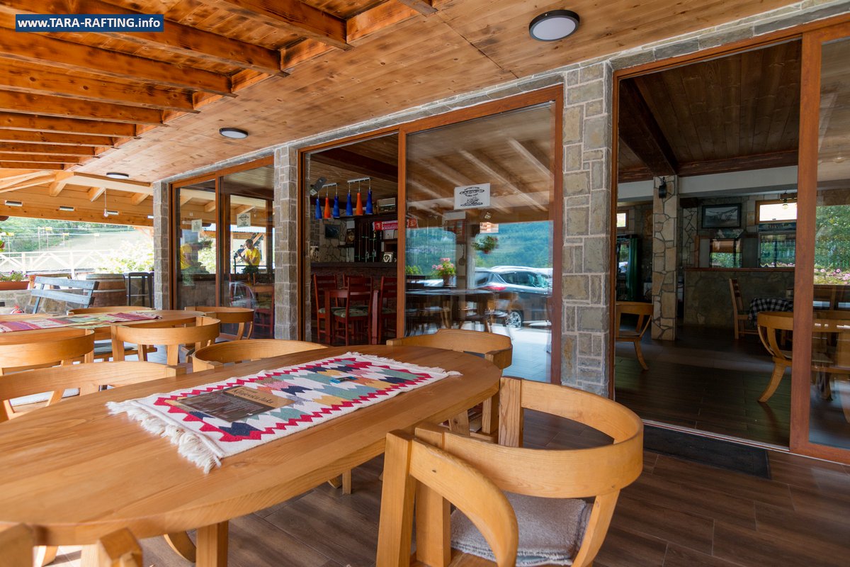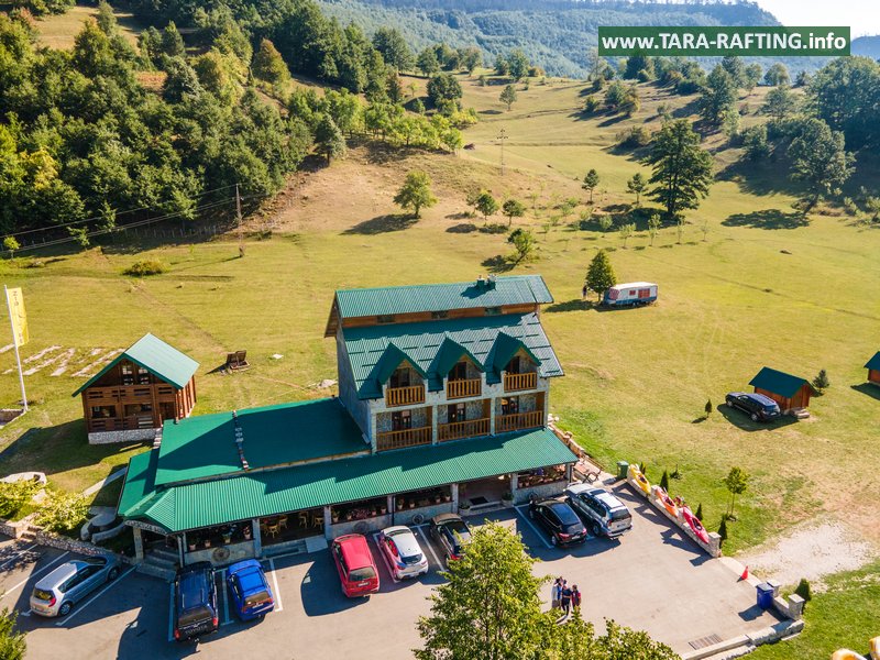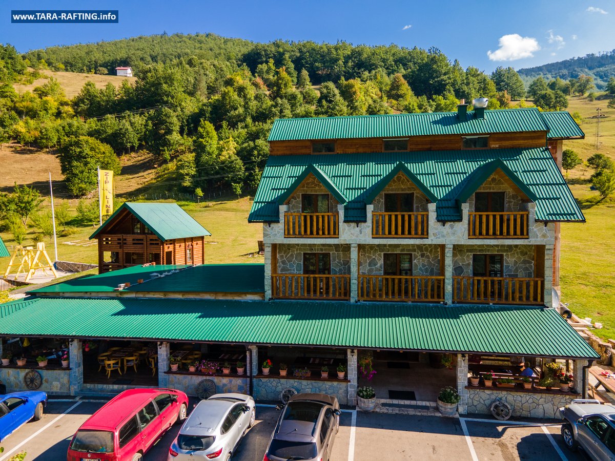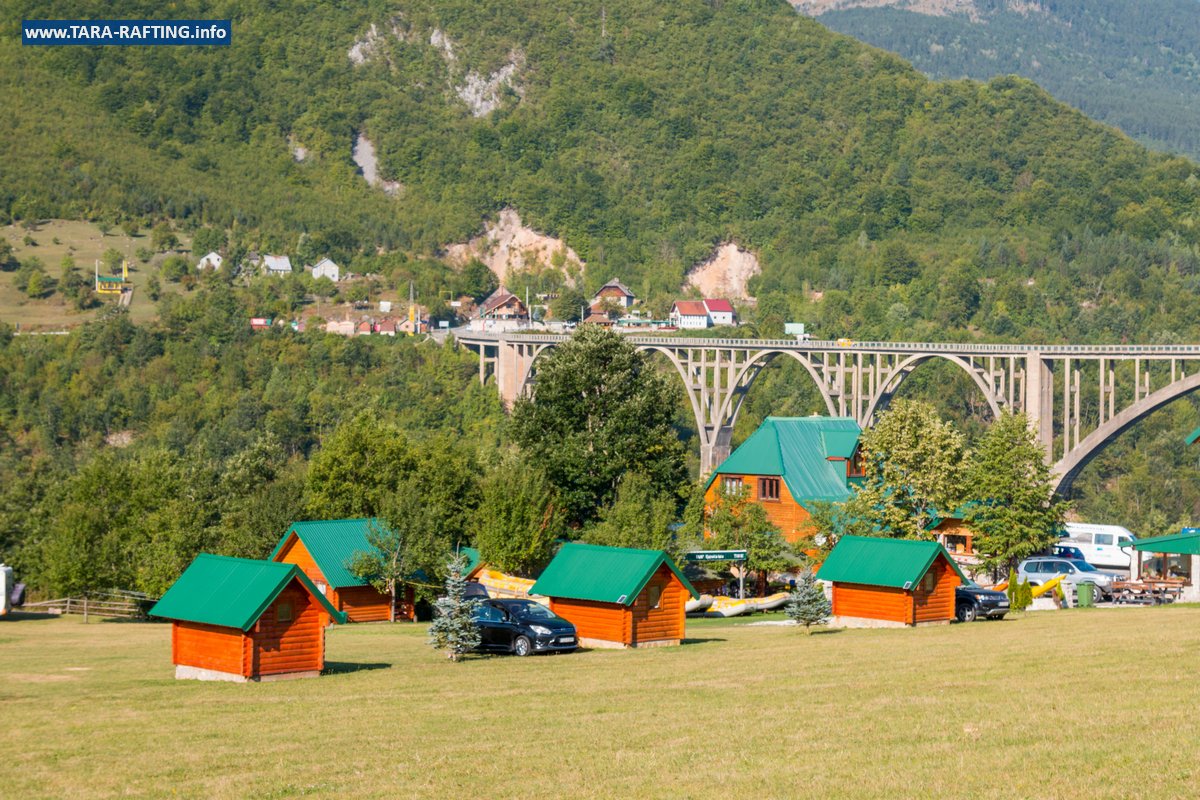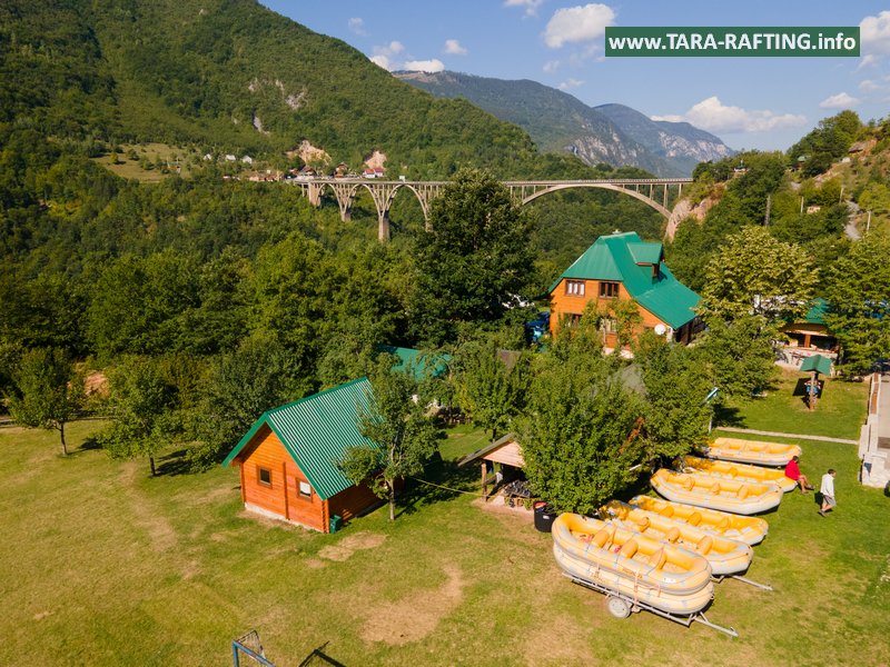 Wybierz zakwaterowanie — pokoje, bungalowy lub „kućeri” — i dodaj jedną z naszych tras raftingowych albo lot tyrolką nad Tarą. Kempingowicze mogą rezerwować wytyczone parcele z prądem i dostępem do węzła sanitarnego (prysznice i toalety). Dzień zakończ lokalnymi specjałami w restauracji i widokiem na most o zachodzie słońca.
