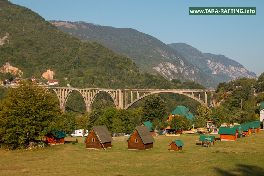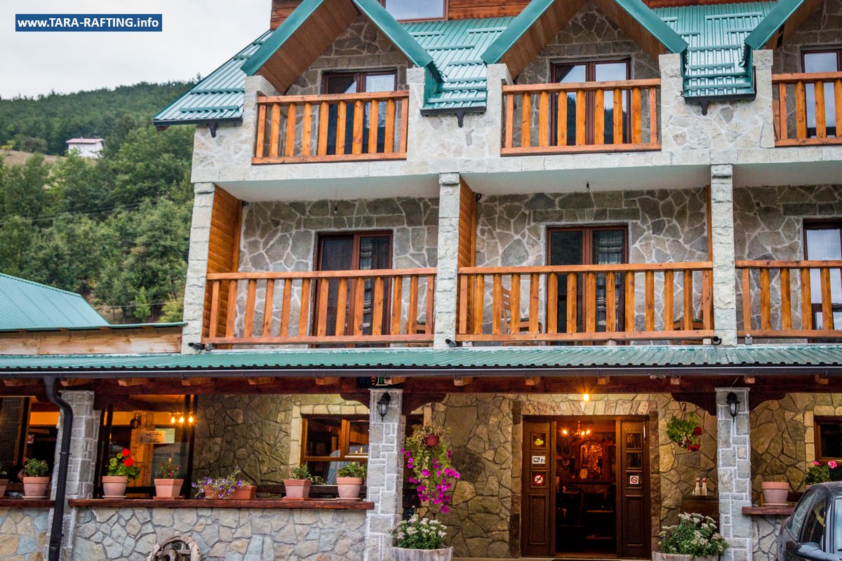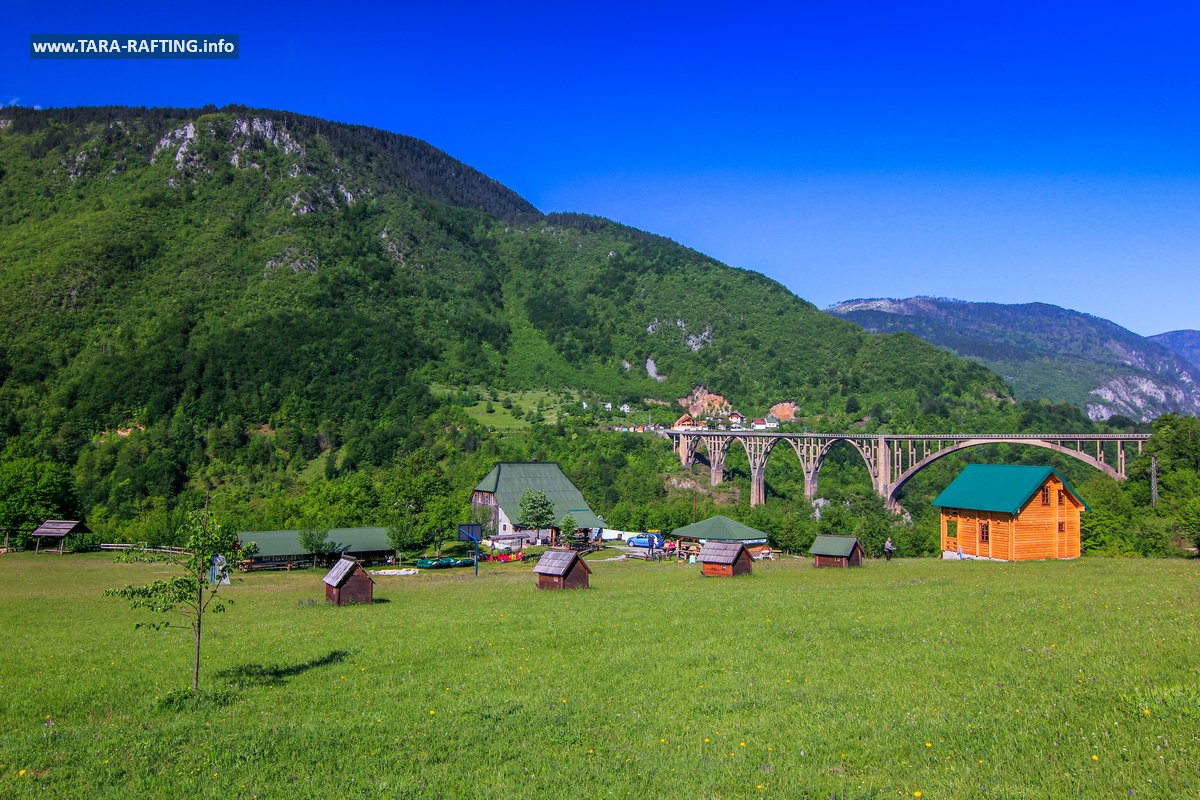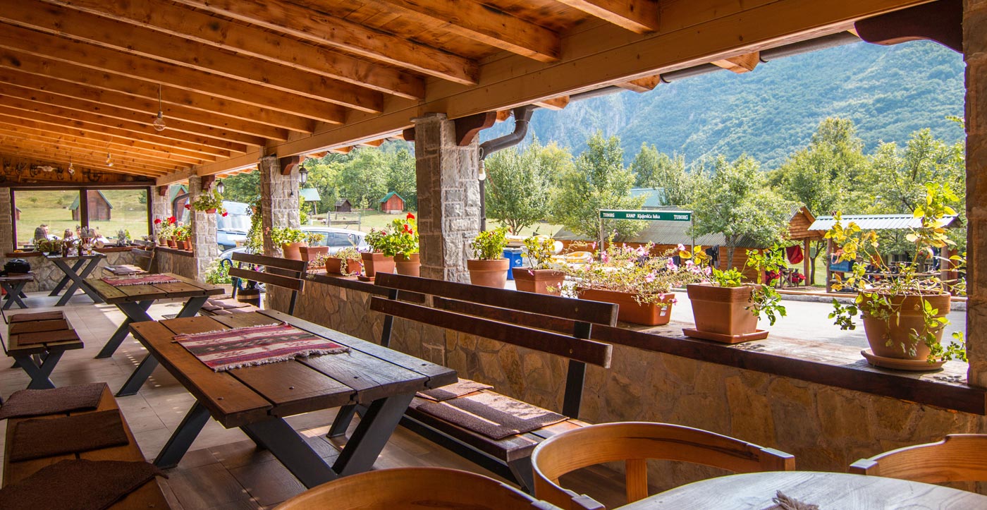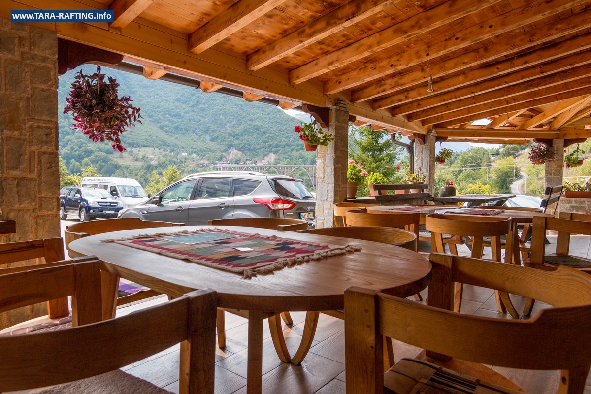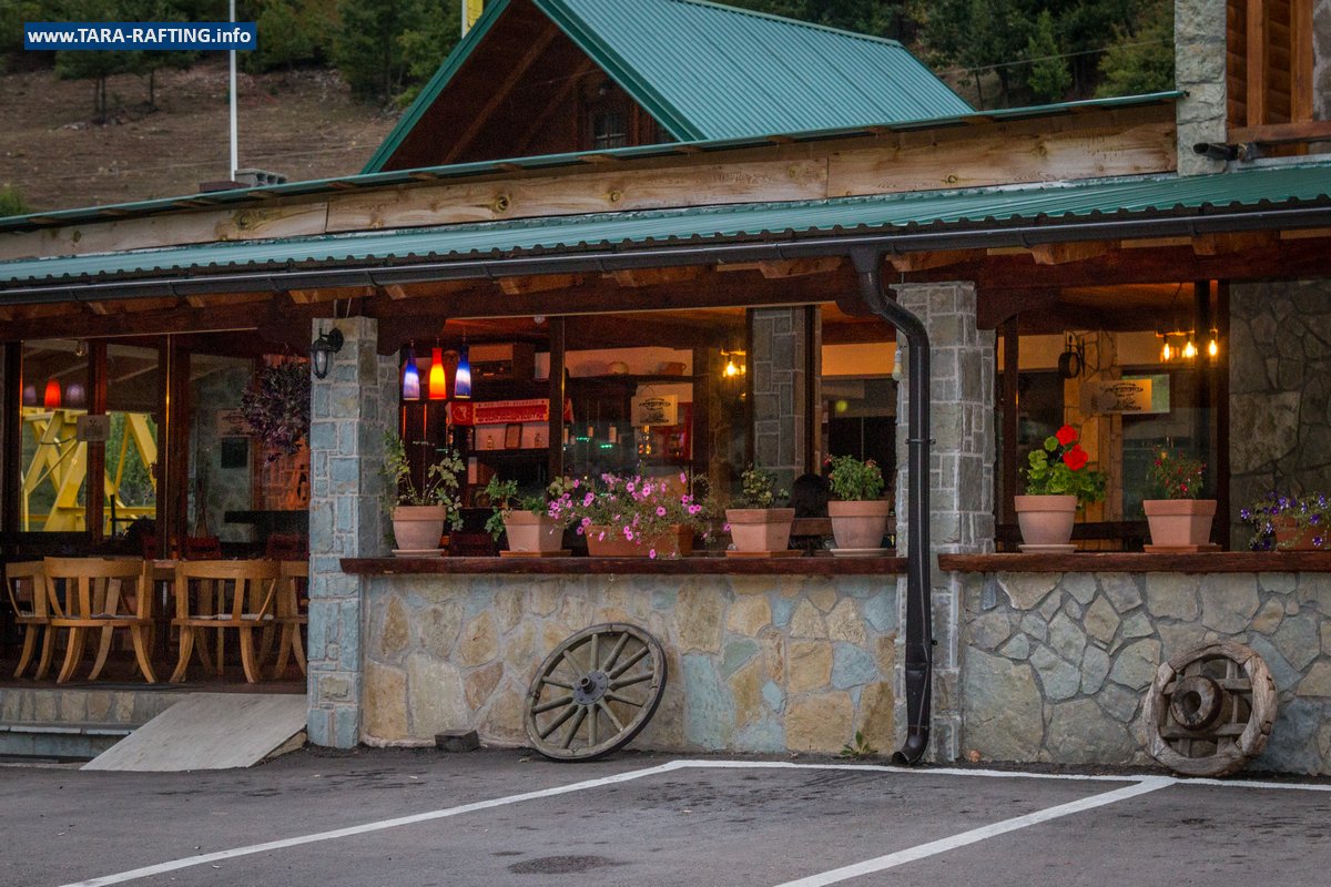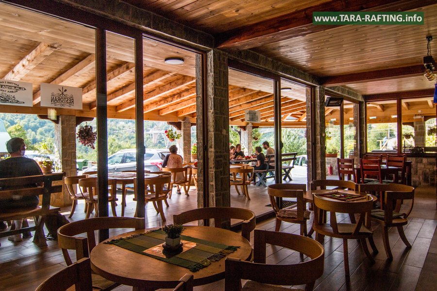 Wybierz zakwaterowanie — pokoje, bungalowy lub „kućeri” — i dodaj jedną z naszych tras raftingowych albo lot tyrolką nad Tarą. Kempingowicze mogą rezerwować wytyczone parcele z prądem i dostępem do węzła sanitarnego (prysznice i toalety). Dzień zakończ lokalnymi specjałami w restauracji i widokiem na most o zachodzie słońca.