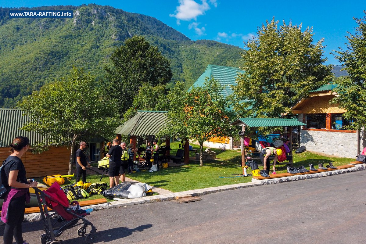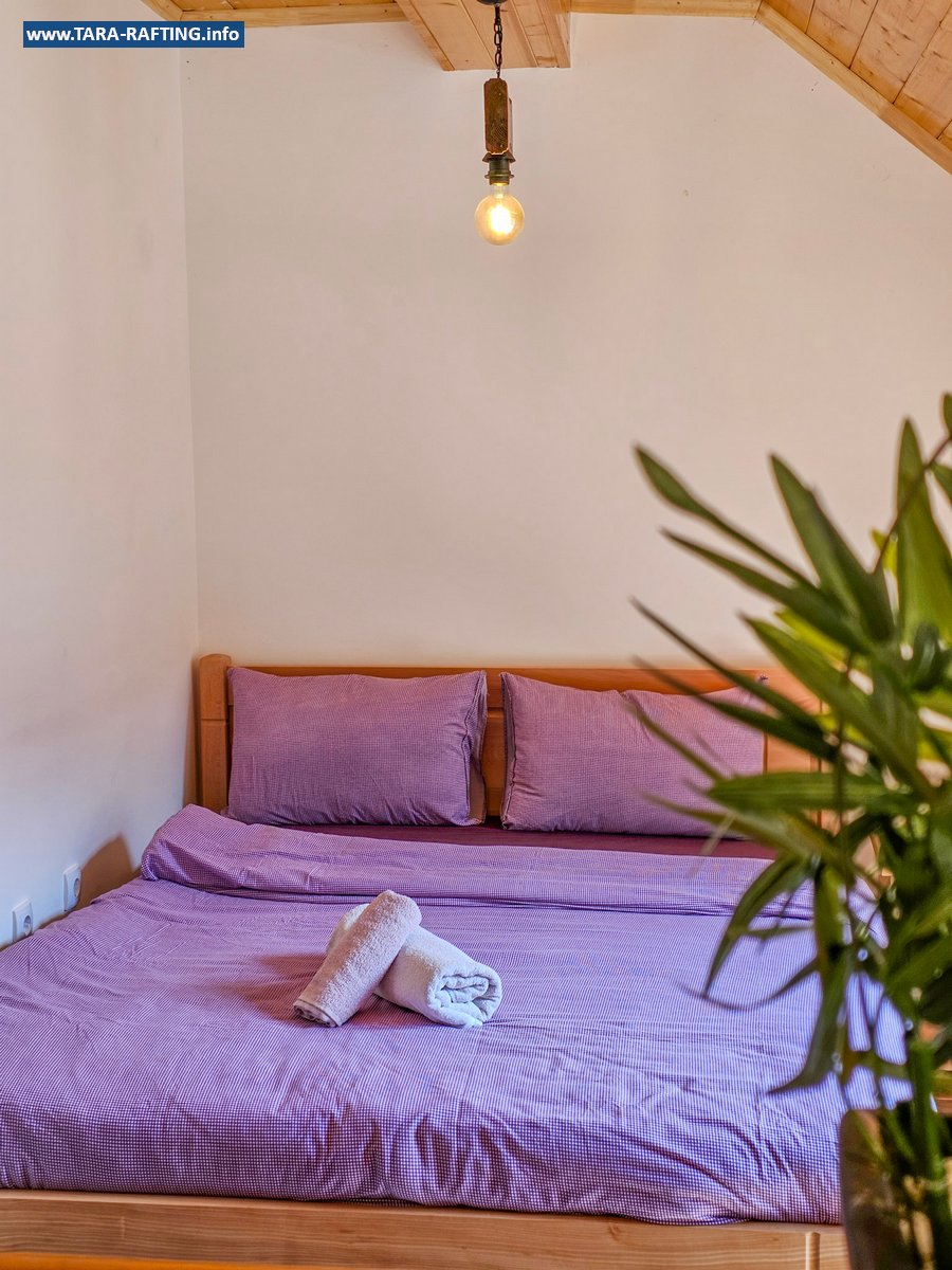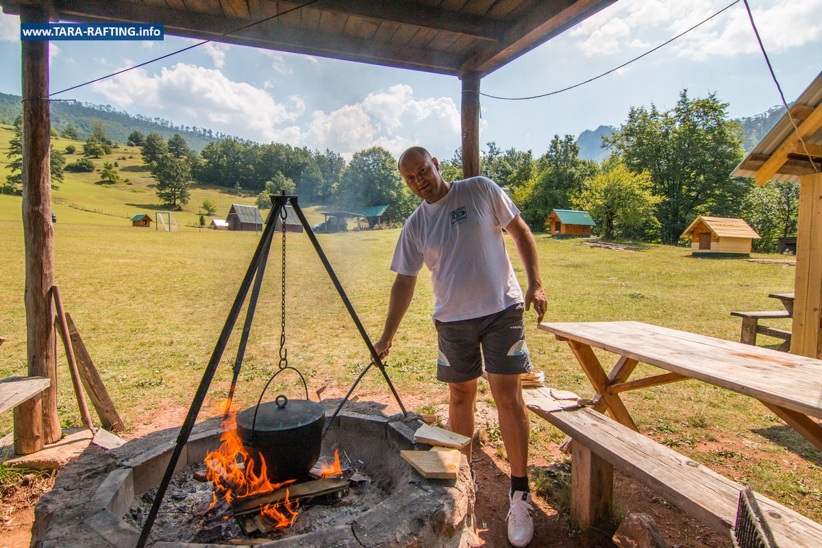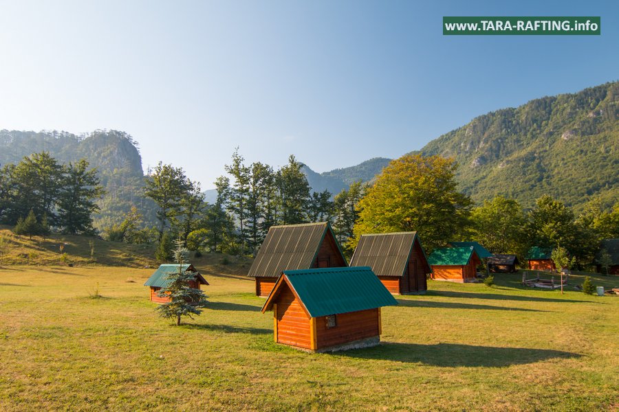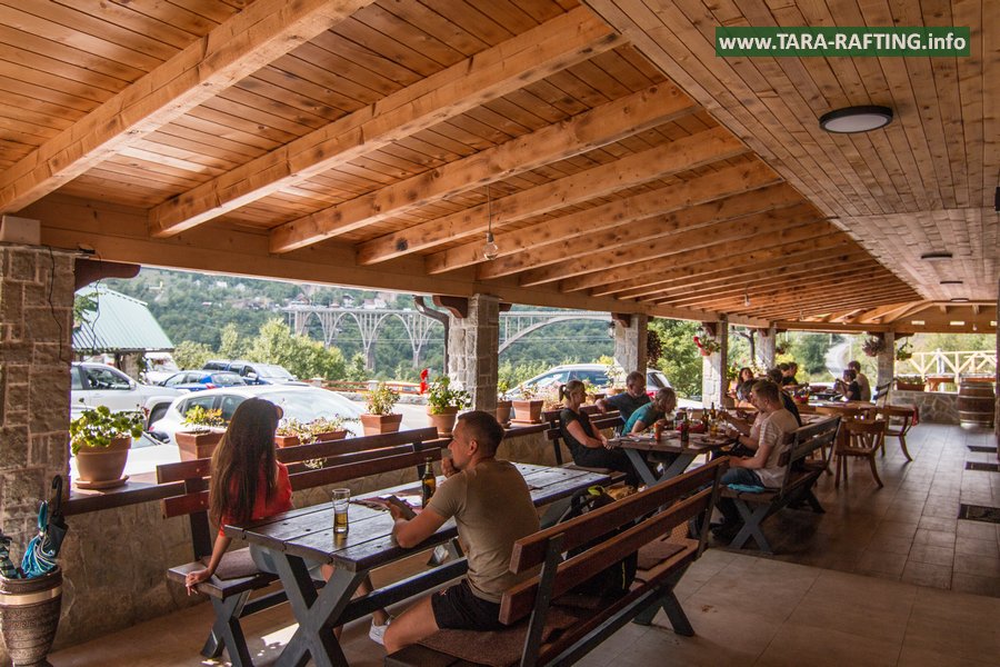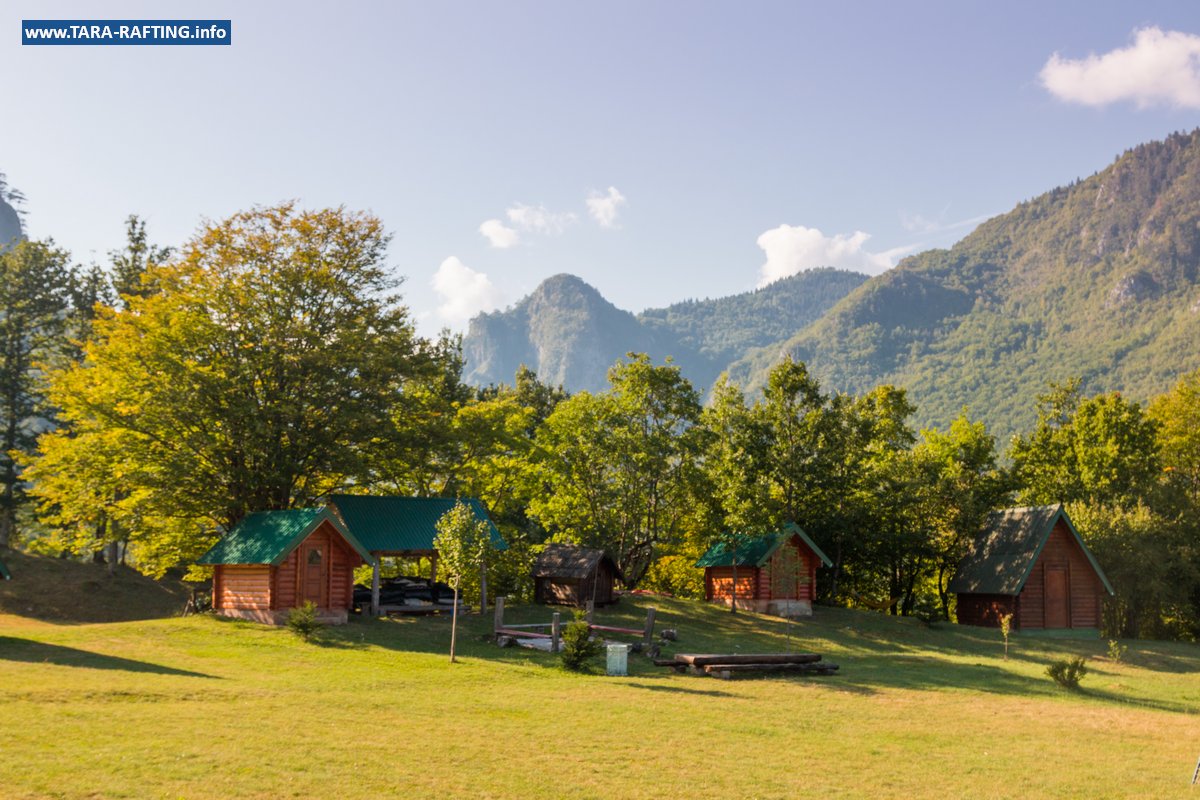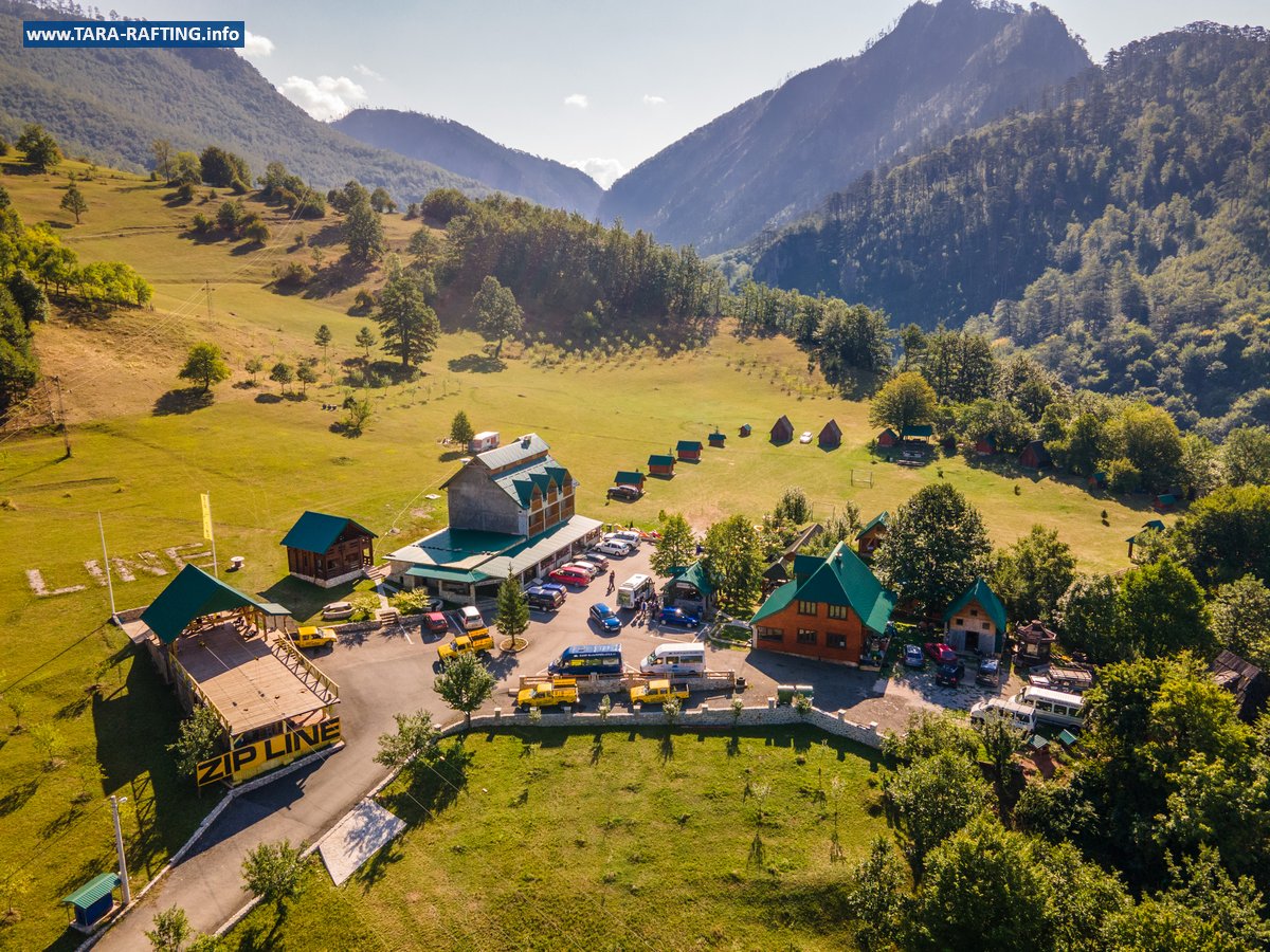 Wybierz zakwaterowanie — pokoje, bungalowy lub „kućeri” — i dodaj jedną z naszych tras raftingowych albo lot tyrolką nad Tarą. Kempingowicze mogą rezerwować wytyczone parcele z prądem i dostępem do węzła sanitarnego (prysznice i toalety). Dzień zakończ lokalnymi specjałami w restauracji i widokiem na most o zachodzie słońca.