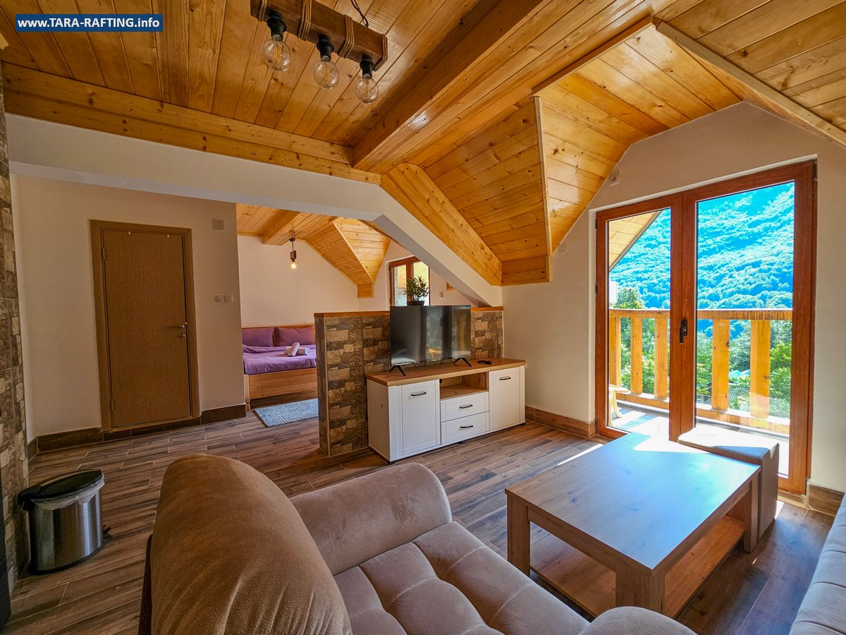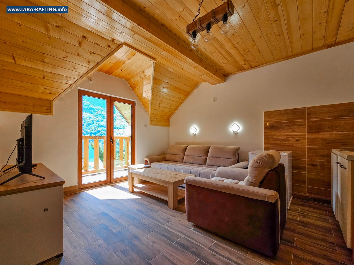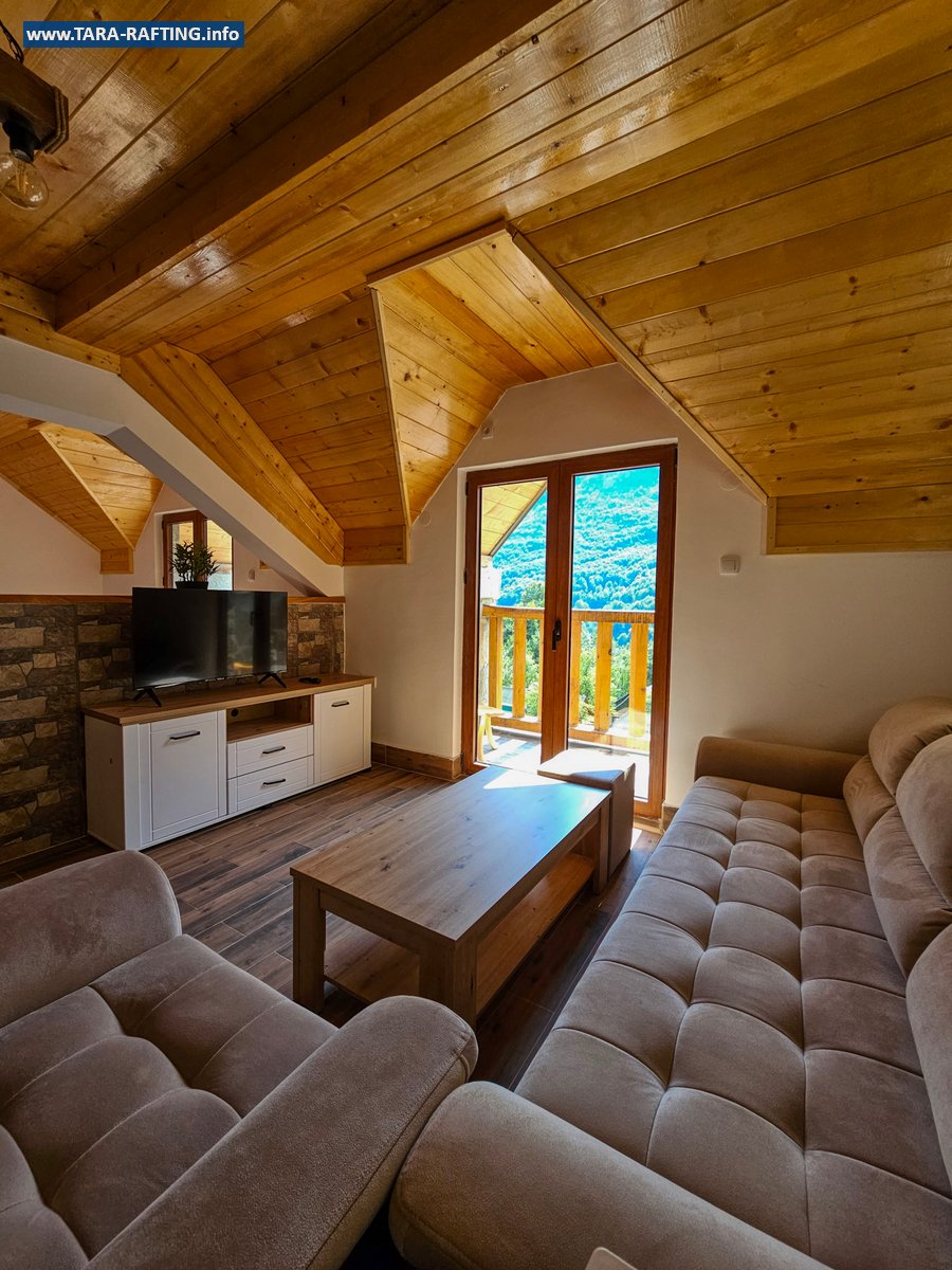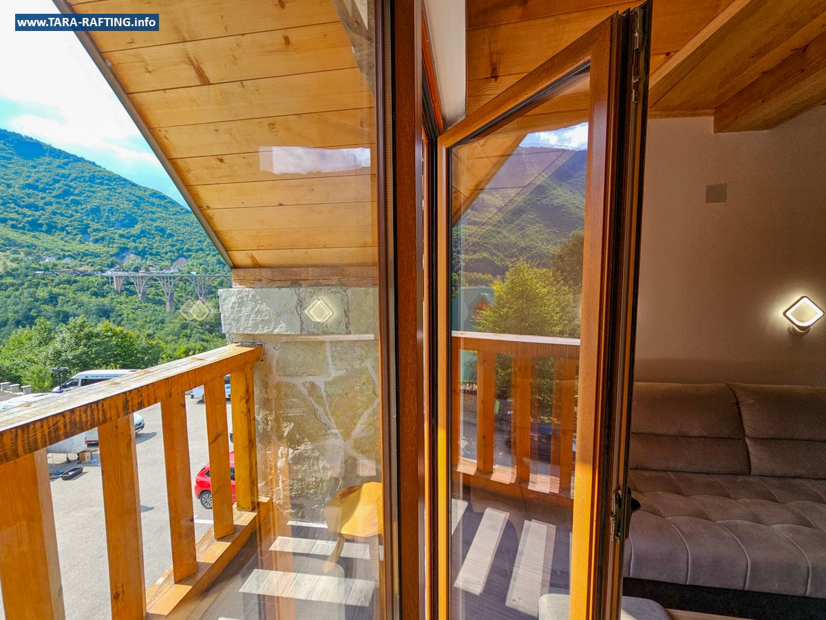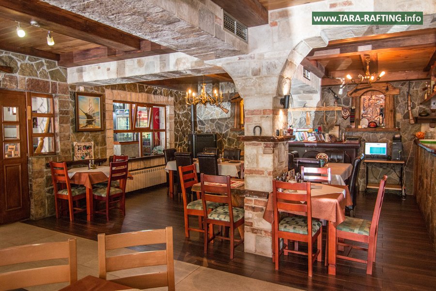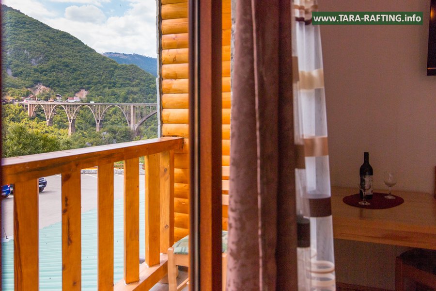 Wybierz zakwaterowanie — pokoje, bungalowy lub „kućeri” — i dodaj jedną z naszych tras raftingowych albo lot tyrolką nad Tarą. Kempingowicze mogą rezerwować wytyczone parcele z prądem i dostępem do węzła sanitarnego (prysznice i toalety). Dzień zakończ lokalnymi specjałami w restauracji i widokiem na most o zachodzie słońca.